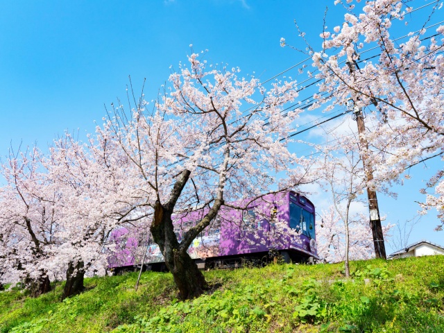 全体が紫色で覆われているのが特徴の嵐電(らんでん)1日乗車券で、京都の四条大宮駅から嵐山駅まで運行する嵐山本線と、太秦映画村駅から北野白梅町まで運行する北野線を乗り降り自由で利用できます!