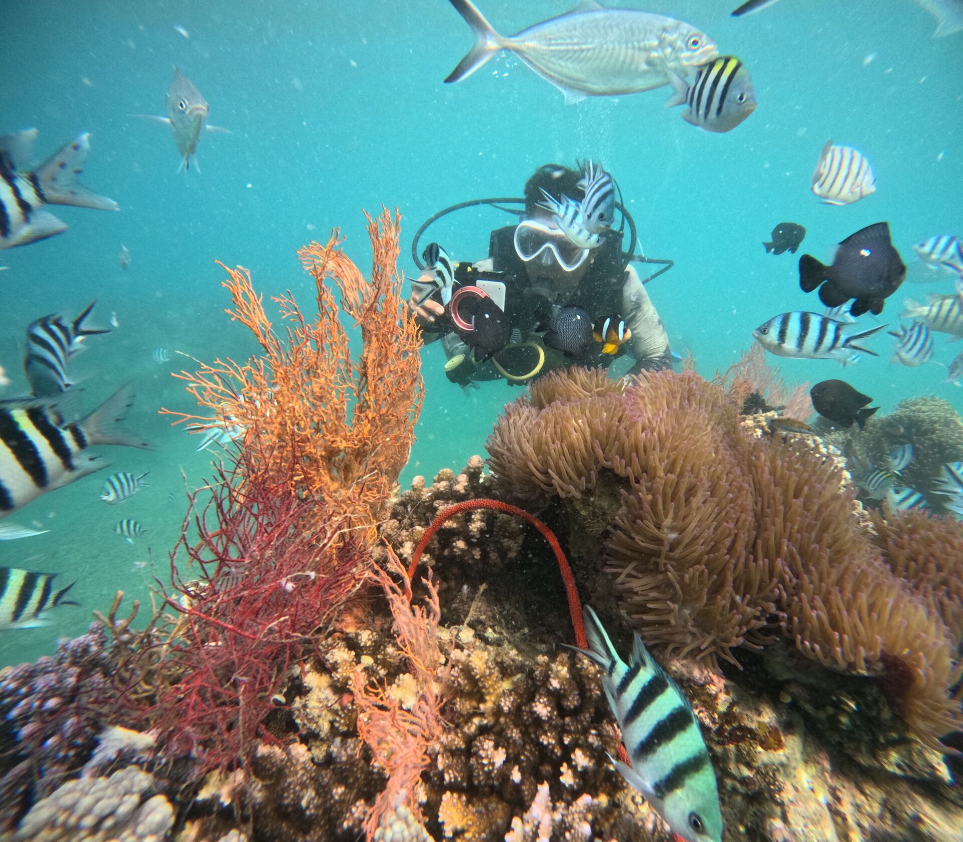 フーコックで最も美しいスポットでシュノーケリングも楽しんで、美しい海辺を背景に人生最高の写真を残すこともできますが、このツアーだけの特別な長所はパドルボードの上で撮るドローンショットなのでぜひ残してみてください!