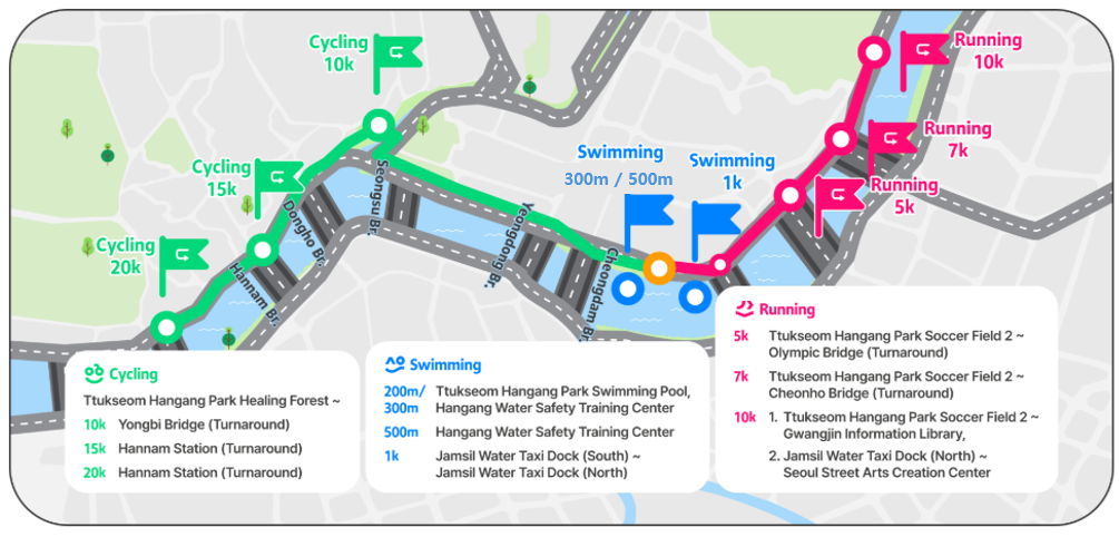 * 上級者コース参加者は必ず漢江(ハンガン)スイミング1kmに最初に挑戦してください。