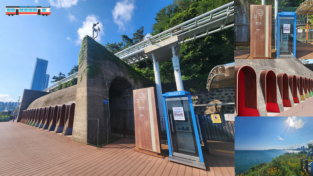 青い海の都市、本物の釜山を描いた海雲台ブルーラインパークの海辺列車は、釜山の尾浦から松亭まで窓越しにうねる海を眺めながら走る交通手段であり観光列車です。 合計4.8km区間の旧東海南部線の止まった鉄道を再開発した観光施設で、釜山の名所を一度に巡ることができ、開通と同時にホットプレイスとなりました。