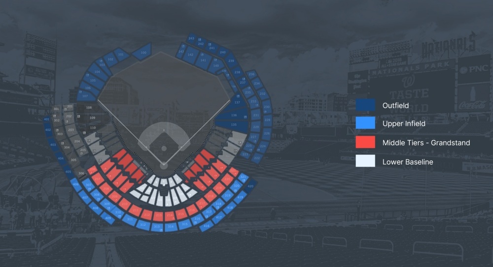 1塁·3塁ライン及びホームプレート周辺の下段座席で、フィールドに近く競技没入度が高いです。