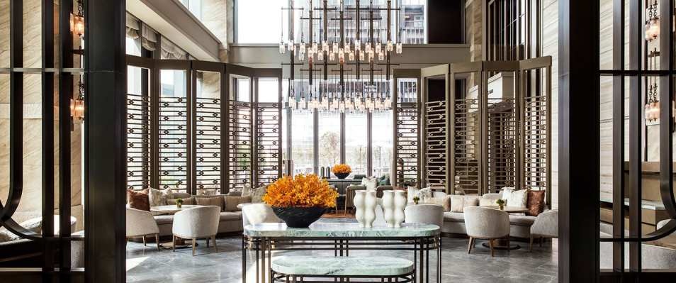 香港セントレジスホテルのラグジュアリーロビーラウンジであるThe Drawing Roomで品格ある休息を取ることができます。