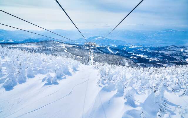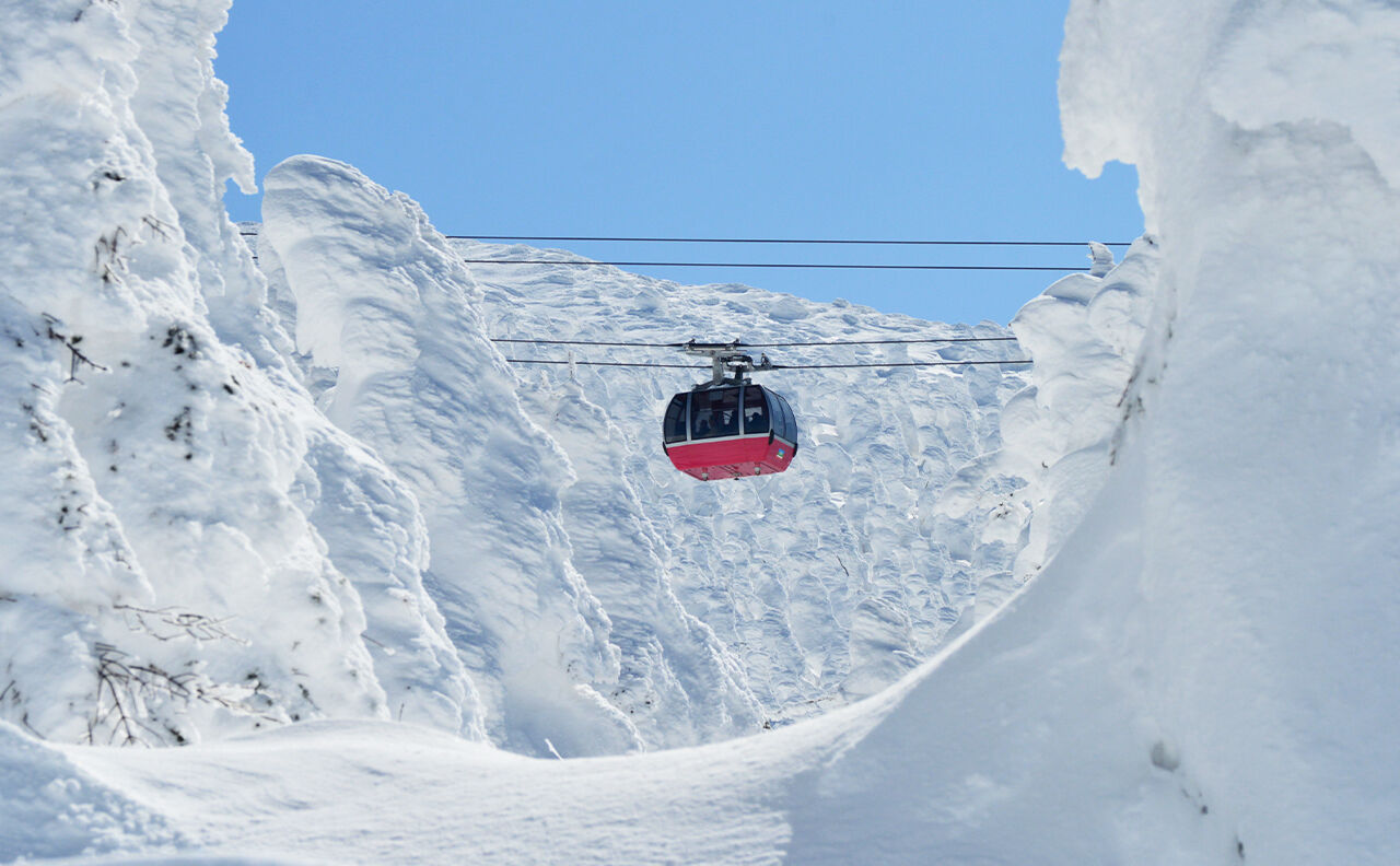 ケーブルカーに乗って蔵王山の上に登ると、シベリアの風と雪が作り出した「アイスモンスター」樹氷軍団を360°パノラマで鑑賞することができます。