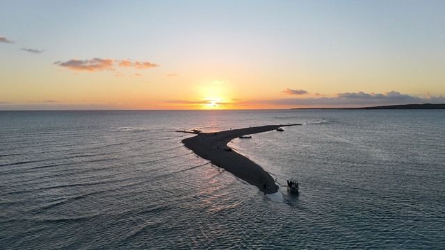 干潮時にのみ姿を現す白い砂の島で、特別な風景を楽しむことができます。