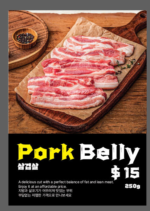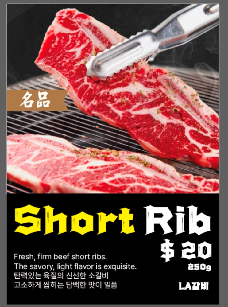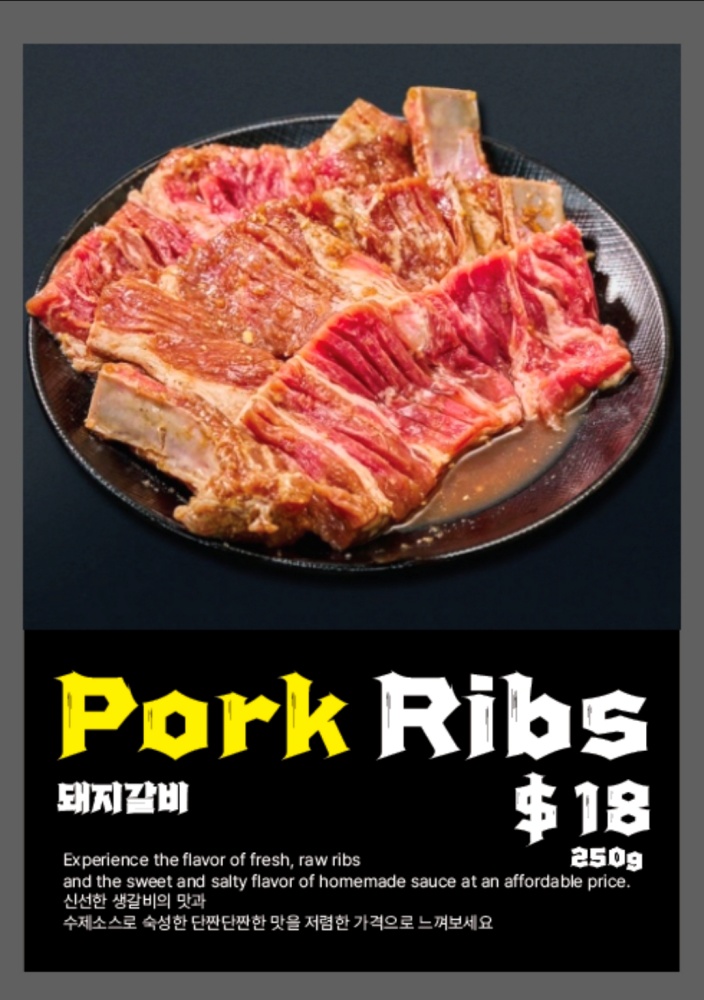 LAカルビ1個、サムギョプサル、ヤンニョムポークチョップ、海老1匹、ソーセージ1個、玉ねぎ、ご飯、おかず5種(野菜含む)