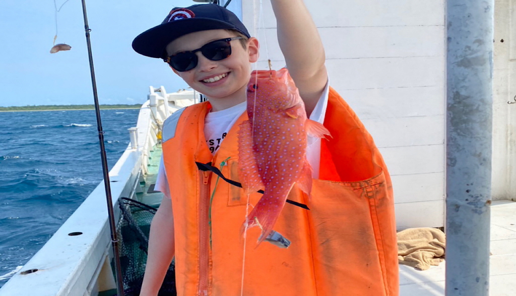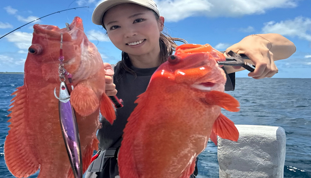 英語,日本語青い石垣の海の上で楽しむ船上釣り体験