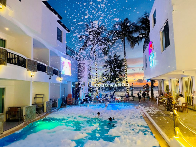 英語ボラカイビーチで楽しむ韓国風食べ放題BBQバイキングです。 涼しい海風を感じながら様々なプレミアム肉とその場で焼いて食べるBBQを存分に楽しむことができます。 旅行中にしっかりと一食を解決するのにぴったりです。 バイキングの利用とともにプールの利用も可能なので、食事の前後にゆったりと水遊びが楽しめます。 海辺の雰囲気とともにゆったりとした時間を過ごすのに最適です。 また、ボラカイで有名なバブル パーティーにも参加でき、より特別な時間を過ごすことができます。 楽しい音楽とともに雰囲気を存分に楽しみながら、忘れられない旅の思い出を作ってみてください。