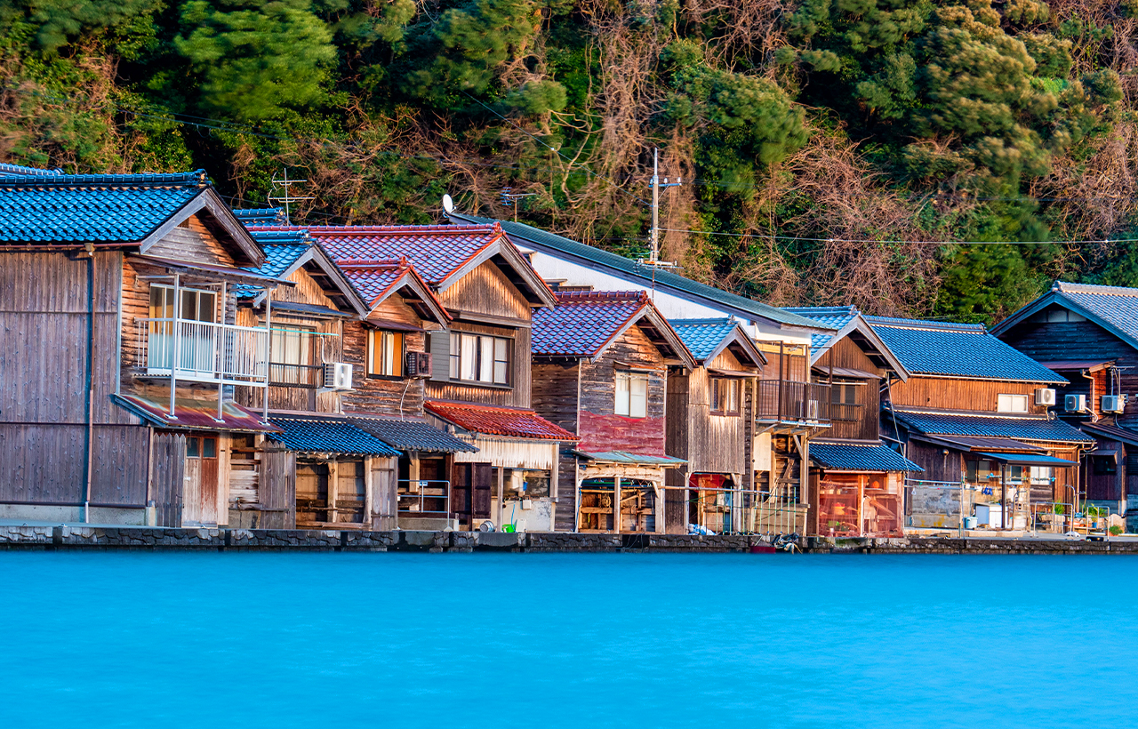 大阪から出発して1日に京都北部の風景を一度に収めるコースです。 海と山、村の雰囲気が全く違うので、移動するたびに旅行シーンが変わる楽しみがあります。 稲船屋は海辺に家々が並ぶ、写真を見るだけで感性がぐっと湧いてくる町です。 自由時間にゆっくり散歩して、遊覧船に乗って海の上から村を眺めることもできます。