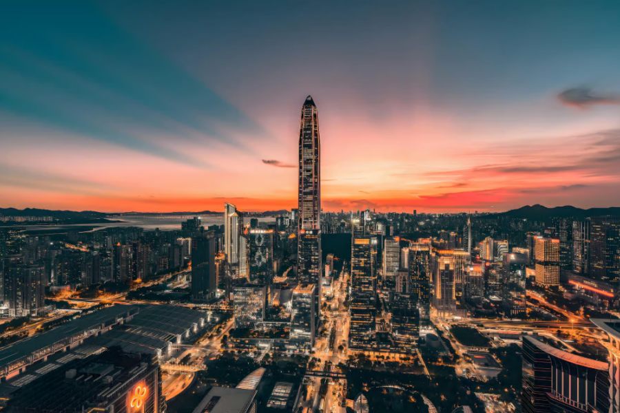 平安国際金融センター展望台から眺める風景は、都市と自然が結合した壮観です。 東からはルオフ地域のランドマーク建物が続き、西にはゴルフ場、먼門湾、自由貿易区が見え、北には山と公園、市庁·展示センターまで一望できます。