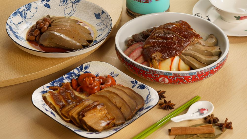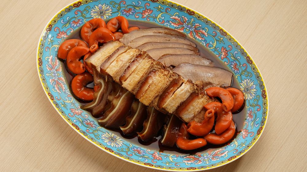 ガチョウの首、ガチョウの様々な部位、豚の耳、ホンチャン(ソーセージ)、豆腐、牛すじ、ガチョウの腎臓、ガチョウの腸:秘伝のソースが染み込んだ、奥深い味わいが絶品の潮州料理の華です。