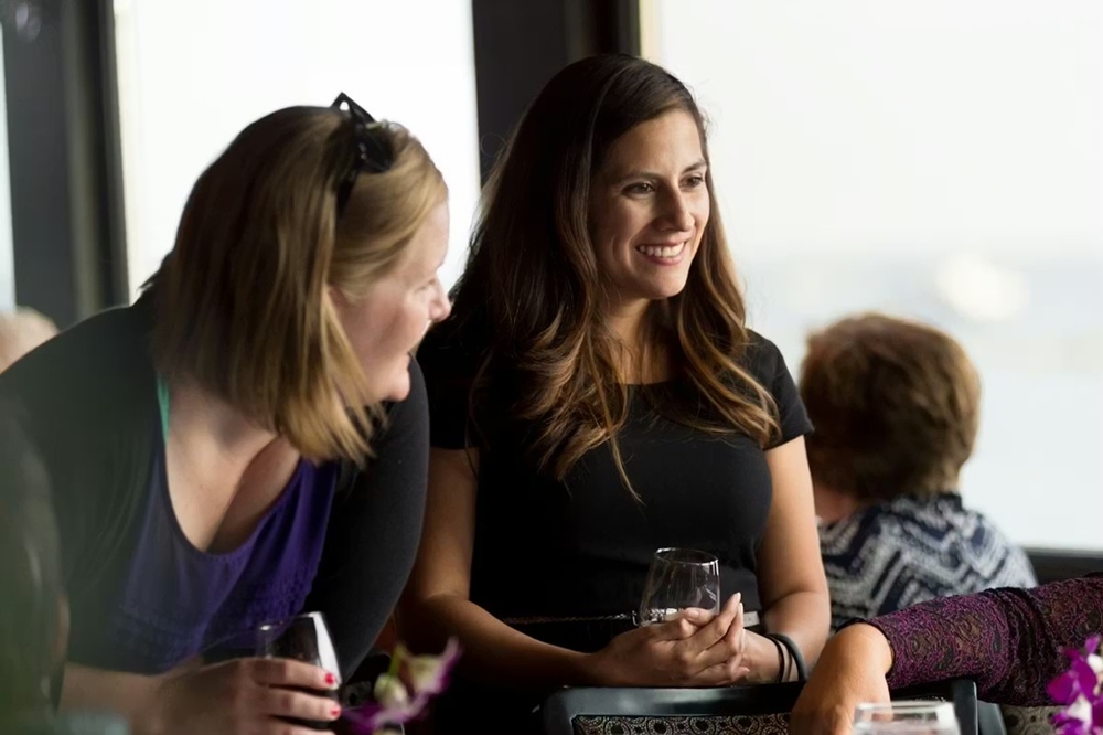 床(ゆか)から天井(てんじょう)まで続(つづ)く大型(おおがた)の窓(まど)ガラスを通(とお)して、シカゴの象徴的(しょうちょうてき)な建築物(けんちくぶつ)を鑑賞(かんしょう)しながら食事(しょくじ)を楽(たの)しむことができます。ラグジュアリーなクルーズ内部(ないぶ)の雰囲気(ふんいき)は、あなたの食事(しょくじ)時間(じかん)をより一層(いっそう)グレードアップしてくれます。