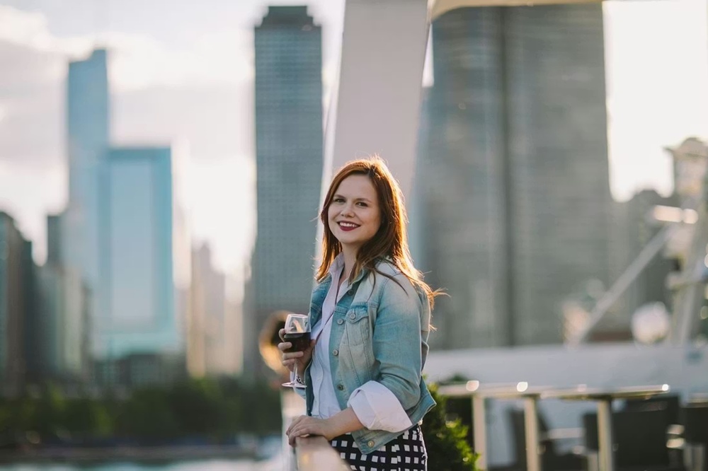 「ビルが立(た)ち並(なら)ぶ間(あいだ)を歩(ある)くのがシカゴの日常(にちじょう)なら、ミシガン湖(こ)の上(うえ)からその摩天楼(まてんろう)を眺(なが)めるのはシカゴのロマンです。絶(た)えず注(そそ)がれるミモザを片手(かたて)に、映画(えいが)の主人公(しゅじんこう)になったような正午(しょうご)を味(あじ)わってみてください。」