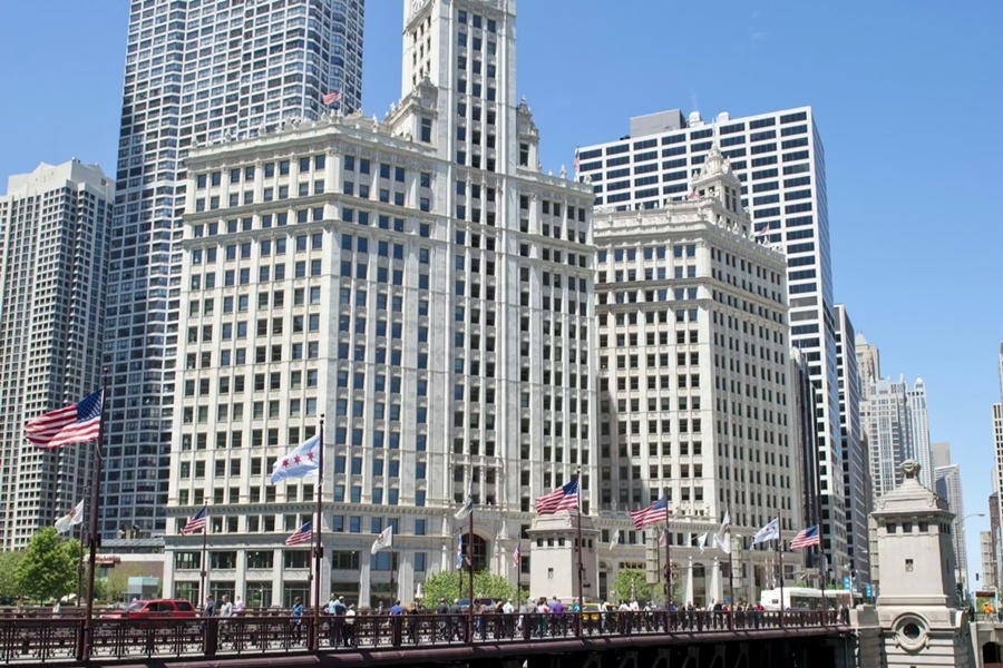 シカゴ川沿いで最も早く視線を奪う白い宝石のような建物です。光の角度によって変わる華やかな外観と精巧な時計台を背景に、シカゴ旅行の最高の写真を残してみましょう。