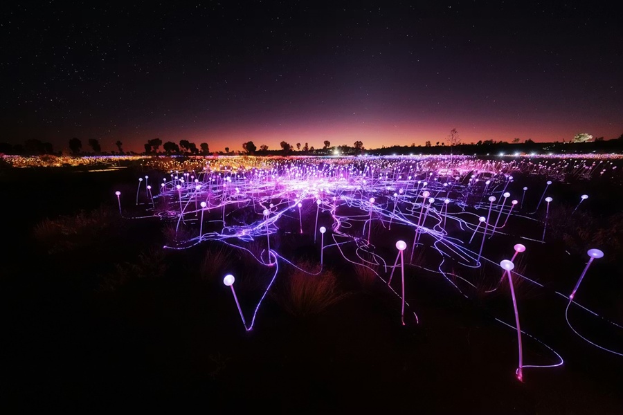 "ウルルのロマン" 広大な天の川の下に広がる光の芸術展示