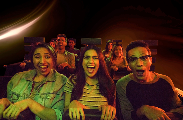 ミイラ男イムホテップから逃れて、前後に疾走し、真っ暗な崖に落ちるアドレナリン爆発体験!