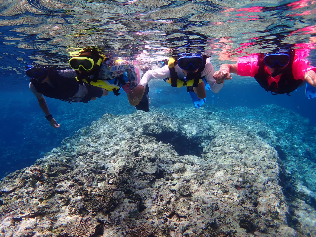 青の洞窟探検とシュノーケリングを一緒に楽しめるという点も大きな魅力です。長い年月をかけて自然が作り出した洞窟の中を直接歩いて探検し、その後は澄み切った青い海の中へ入ってサンゴや熱帯魚がいっぱいの水中世界に出会えます。海の上と下を両方体験できるので、石垣島の自然をより立体的に楽しむことができます。