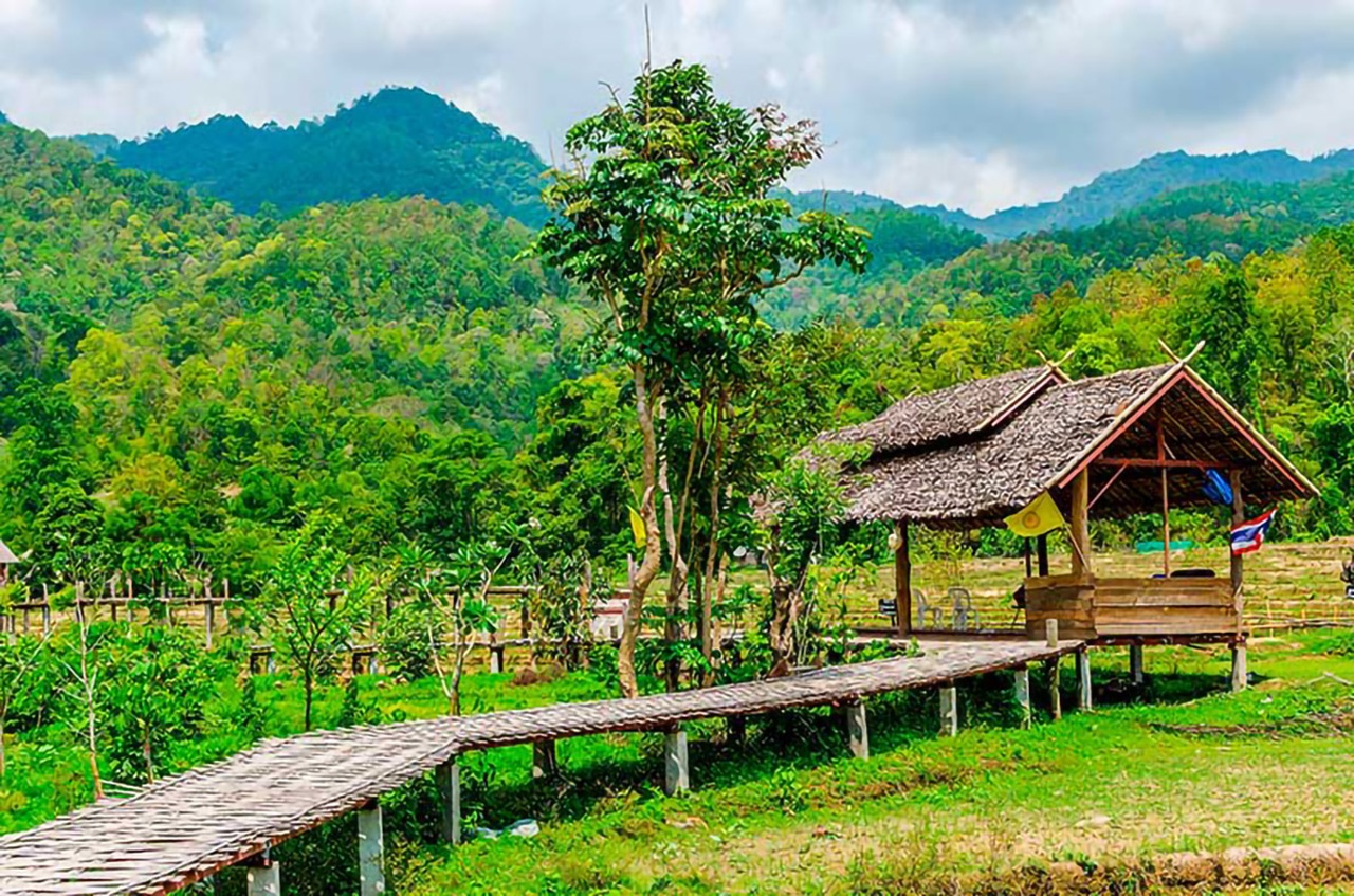 涼やかに流れ落ちる水しぶきと滑らかな岩が調和したモーペーン滝は、地元の人々にも愛される憩いの場です。滝の音をBGMに、パーイの活気に満ちた自然景観をフレームに収めてみましょう。