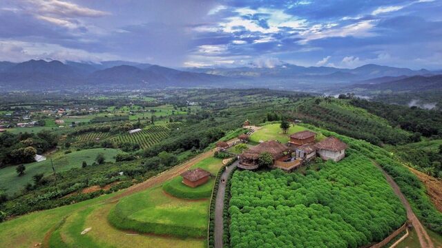 パーイの街並みが眼下に涼やかに広がるこの場所で、爽やかな朝の空気を吸ってみてください。可愛らしい造形物と調和したパノラマビューは、パーイ旅行を象徴する最高のフォトスポットです。