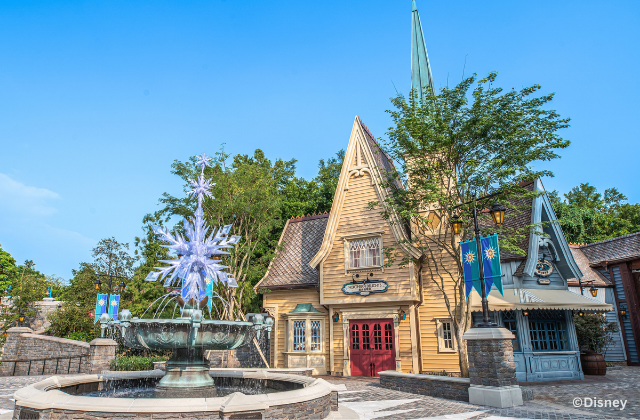 ディズニー映画『アナと雪の女王』からインスピレーションを受けた最新のテーマエリアで、アレンデール王国に入り、エルサとアナに会って、冬をテーマにした没入型体験を楽しむことができます。
