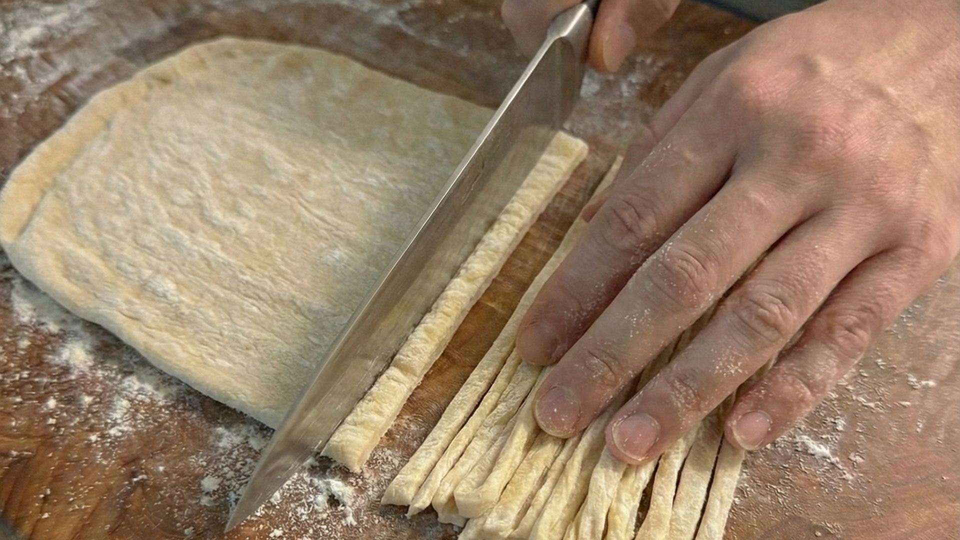カルグクス(Kalguksu):直接こねて切ったカルグクスを深く煮込んだスープに入れて楽しむ完璧なフィナーレです。