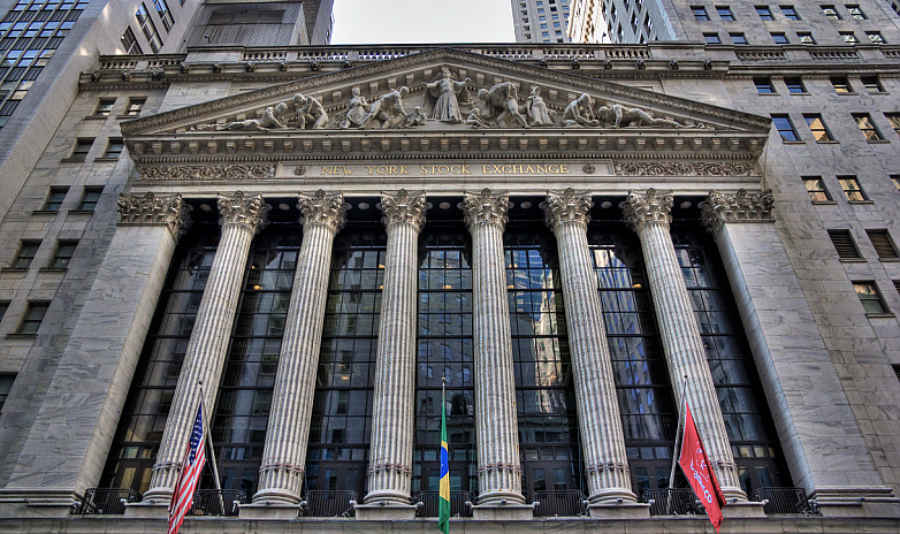 ニューヨーク証券取引所(Stock Exchange)前でガイドとミーティング