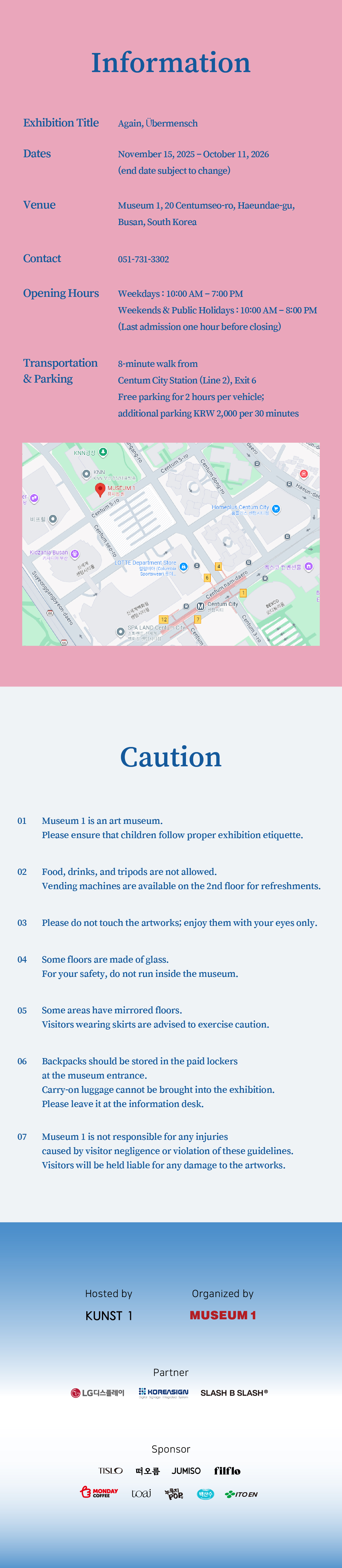 韓国語🎧 G-DRAGONが参加する展示の中の展示 グローバルアーティスト、G-DRAGONの「Übermensch(超人)」哲学と音楽に基づいて制作された**<Übermensch BUSAN>メディアアート特別展**も合わせてお楽しみください!🌌✨