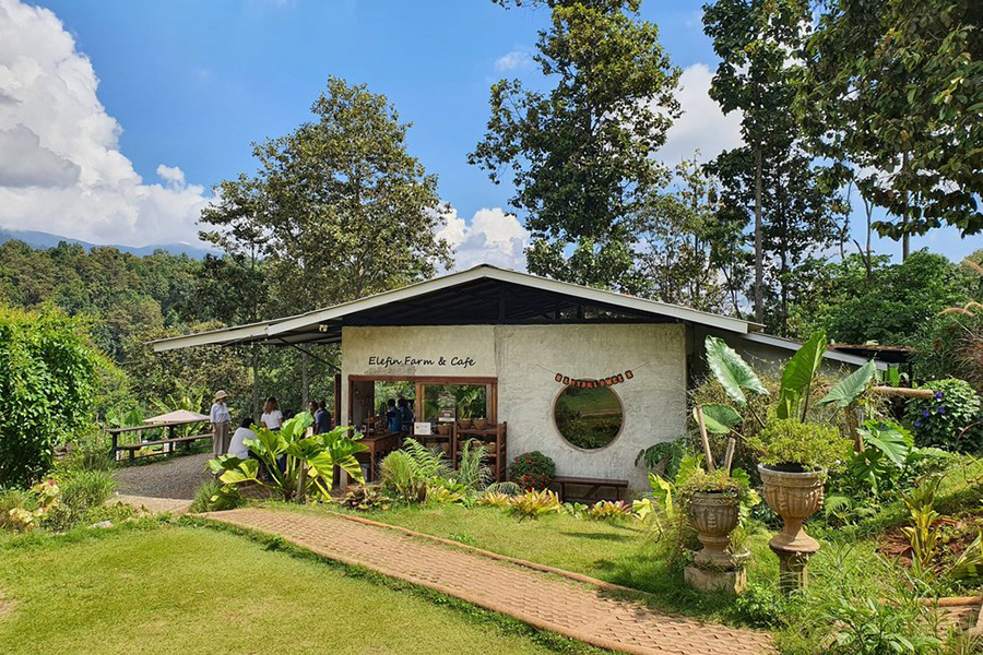 最近SNSで最も話題の、チェンマイの「感性」だけを凝縮したツアーです。象と一緒にコーヒーを楽しむという異色の体験ができる**エレフィンファーム(Elefin Farm)**カフェから一日が始まります。ここの象たちは家族のように大切にされており、旅行者は広大な山脈を背景に象に餌をあげたり、写真を撮ったりしながら平和な午前中を過ごせます。