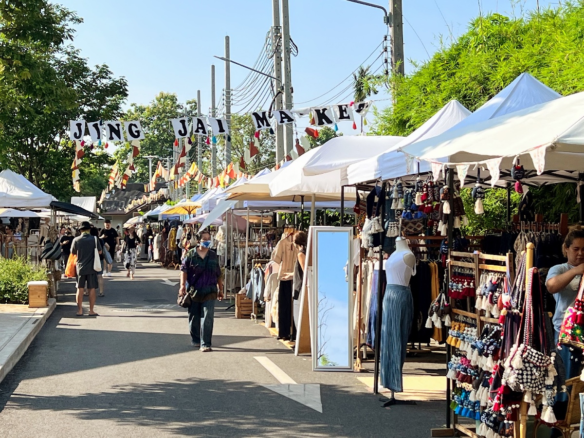 週末の午前中限定で開催されるジンジャイ・マーケットは、今チェンマイで最も「ヒップ」で洗練された市場として知られています。オーガニック食材はもちろん、感度の高いデザイン雑貨や衣類が並び、生演奏を聴きながら楽しむハンドドリップコーヒーは格別です。2026年は「インスタ映え」するフォトスポットとしても不動の人気を誇っています。