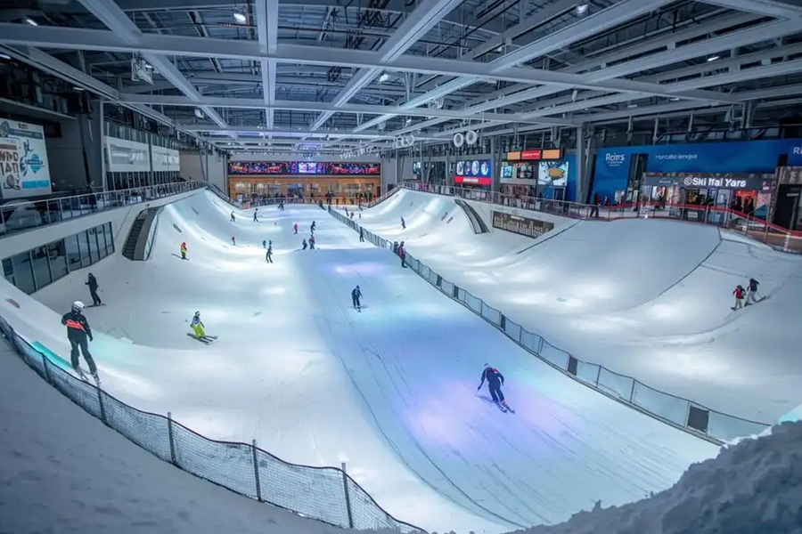 中東最大のショッピングモールの一つである「モール・オブ・エミレーツ」内には、季節を忘れて一年中白い雪が降る神秘的な空間があります。「スキードバイ」は、砂漠の真ん中でウィンタースポーツを楽しむという想像を現実にした象徴的な場所です。単なる模倣ではなく、実際の雪とそっくりの高品質な人工雪が積もった5つのスロープを備えており、初心者から上級者までレベルの高いスキーやスノーボードを楽しめます。熱い砂漠の太陽の下でスキーウェアを着て雪合戦を楽しむという異色の体験は、ドバイでしか味わえない特別な楽しみです。
