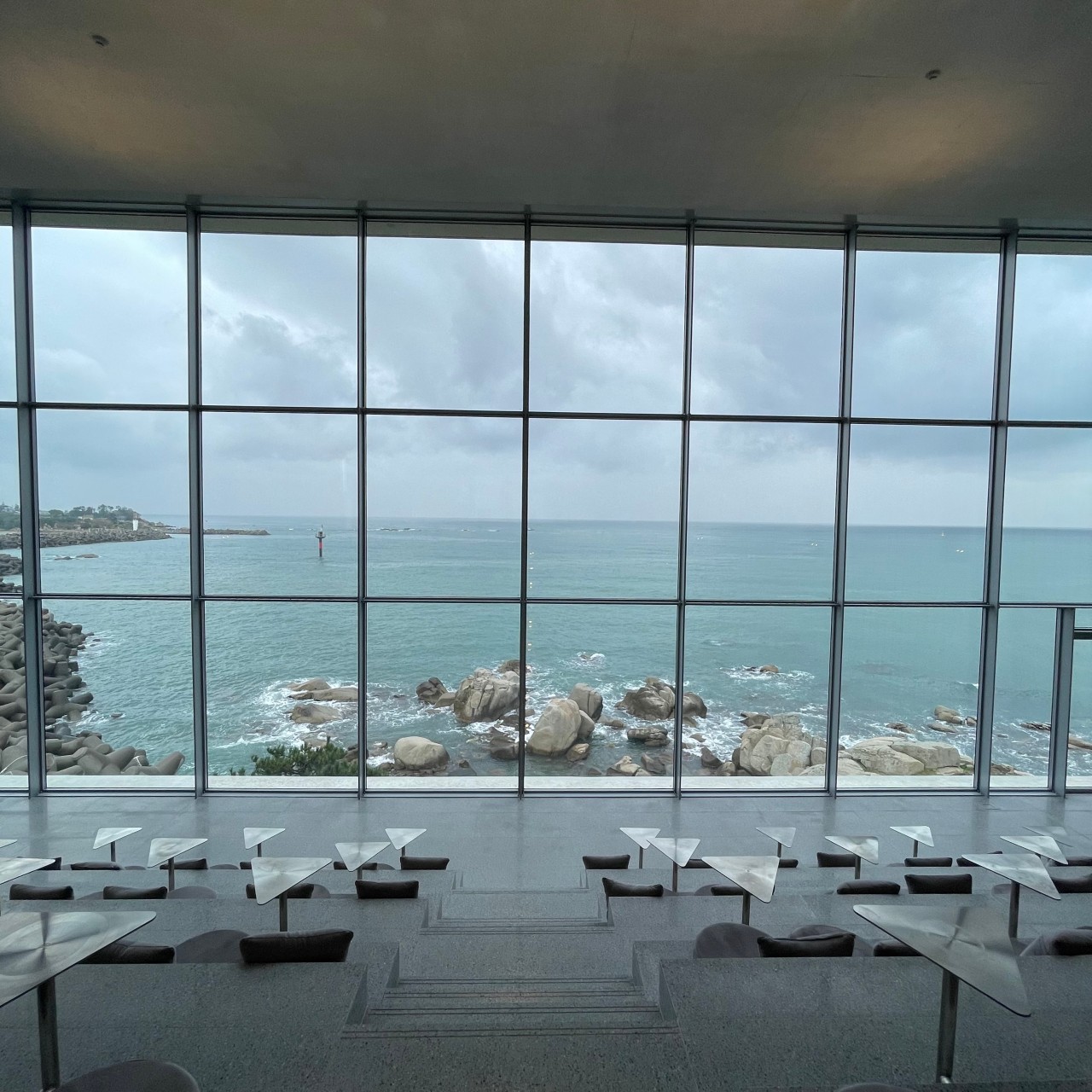蔚山(ウルサン)瑞生(ソセン)の海岸沿いに位置するここは、建築物自体が1つの芸術作品です。巨大な三角形のガラス窓は、青い東海(トンへ、日本名:日本海)を収める額縁のよう。劇場式の構造で配置された座席に座り、刻々と変化する波の動きを眺めていると、まるで海という映画を鑑賞しているかのような没入感を味わえます。