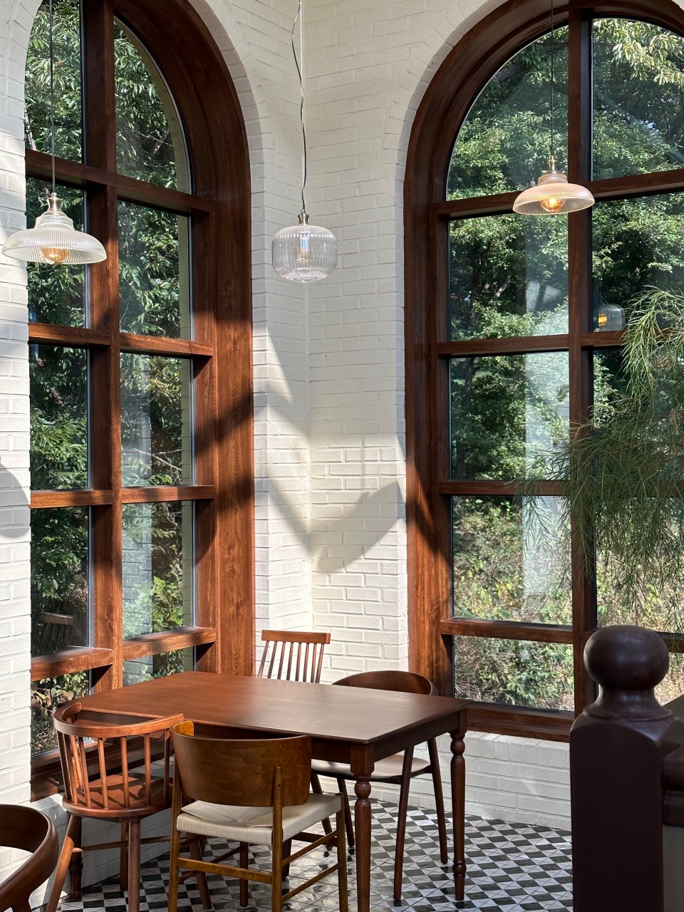 京畿道(キョンギド)広州(クァンジュ)の深い森の中に位置する輝雨(フィウ)コーヒーは、「余白の美」を最もよく表している空間です。ガラス窓を通して季節の変化を存分に受け入れ、丁寧に淹れられたブルーイングコーヒーを一杯、ゆったりと楽しむのに最適です。複雑な都心を離れ、自然の音に耳を傾けたい方にとって最高の安息地となるでしょう。