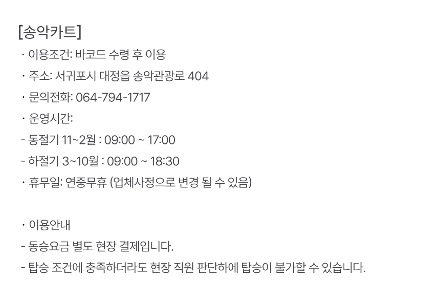 하절기 3 ~ 10월 : 오전 09:00 ~ 오후 18:30