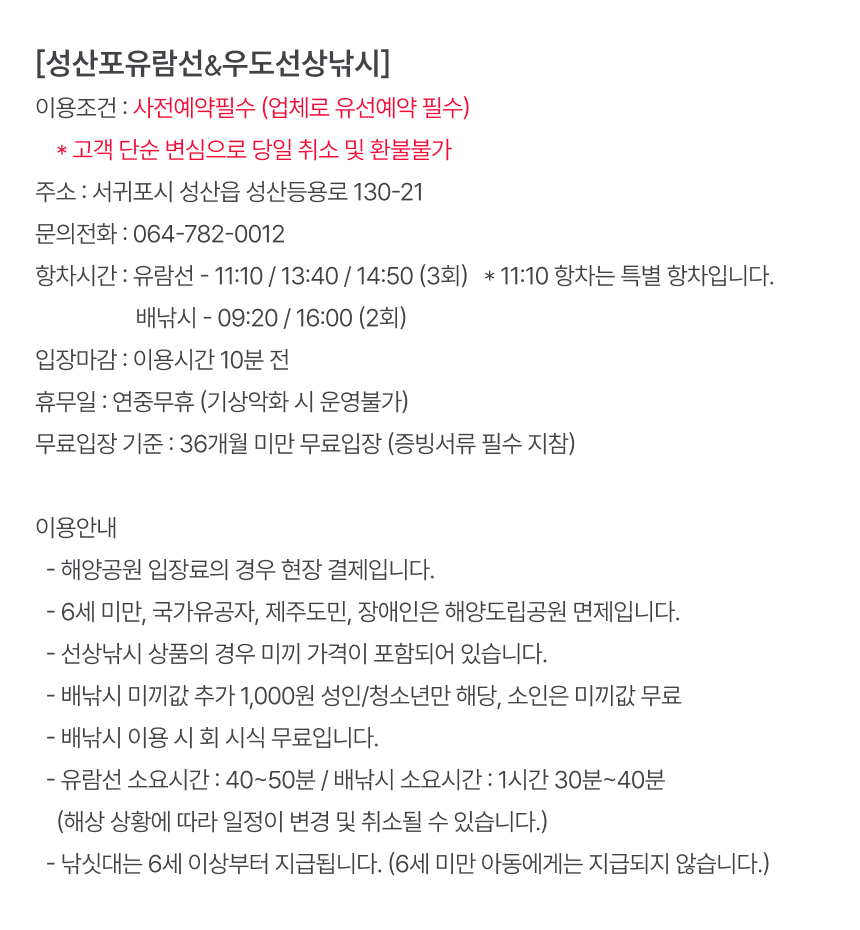 성산포유람선&우도선상낚시