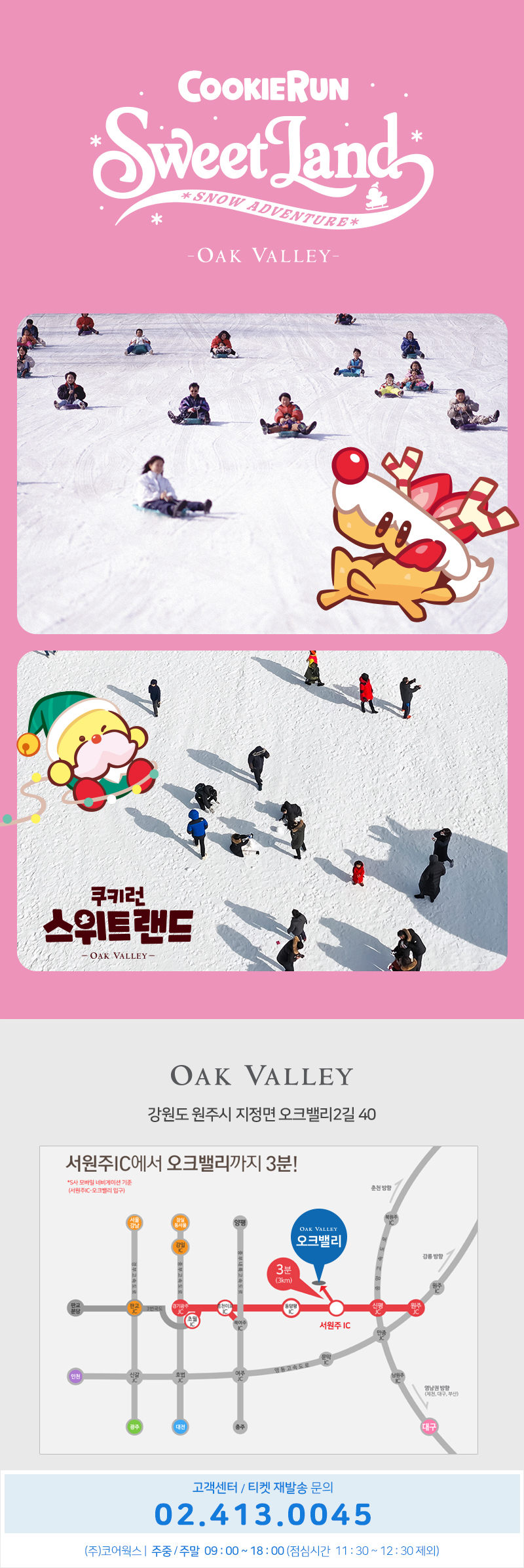 · 현장에서 모바일 티켓 제시 후 이용 (매표위치 : 콘도 C동 1층 쿠키런 스위트밸리 내 )