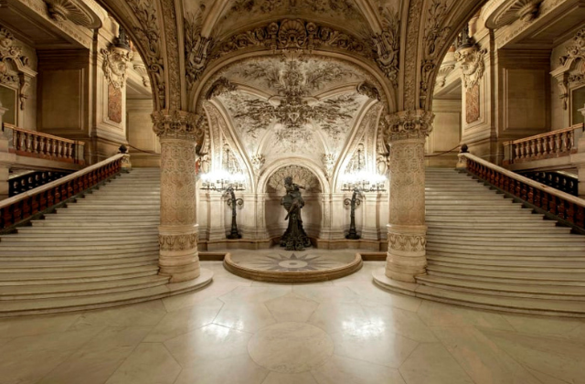 가르니에의 건축물은 화려함이 돋보이는데 특히 입구의 웅장한 계단은 대리석의 화려함을 그대로 살렸다는 평을 받아요! 장밋빛 대리석 기둥과 바로크 양식의 동상, 정교하게 조각된 프리즈가 있는 정면을 직접 방문해 감상해 보세요.