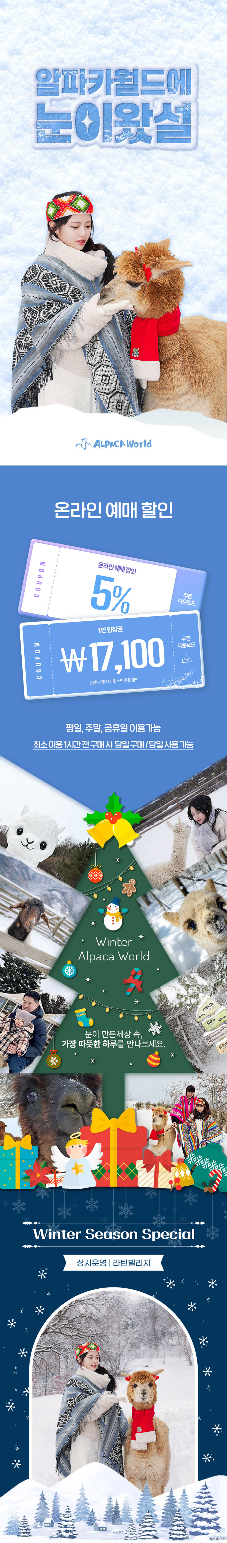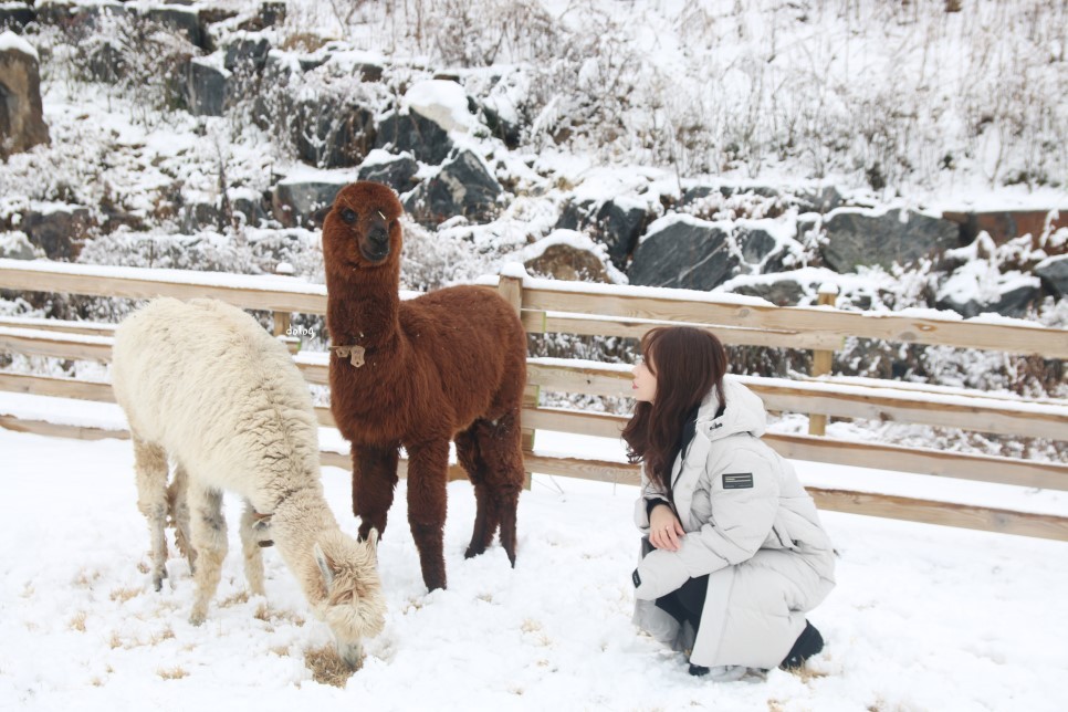 이어서 즐기는 알파카월드는 눈이 만든 세상 속에서 가장 따뜻한 하루를 만날 수 있는 힐링 테마파크예요. 눈 덮인 설산을 배경으로 나만의 ‘인생샷’을 남길 수 있으며, 하얀 눈과 대비되는 페루 전통 판초가 가장 아름답게 빛나는 순간을 경험할 수 있어요. 특히 알파카와 함께하는 1:1 힐링 산책을 신청하면 페루 전통 판초를 무료로 대여해 주어, 사진과 체험 모두 특별한 추억으로 남겨보실 수 있답니다. 가족, 연인, 친구와 함께 겨울에만 느낄 수 있는 감성 가득한 시간을 보내며, 알파카월드에서 잊지 못할 겨울 하루를 만들어보세요. ❄️🦙