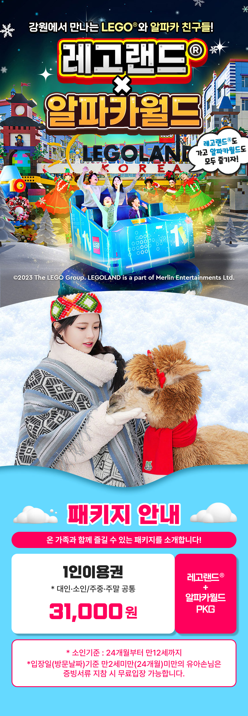 아이에게는 상상력과 창작 체험을, 어른에게는 겨울 감성 힐링을 동시에 담은 레고랜드 + 알파카월드 패키지!