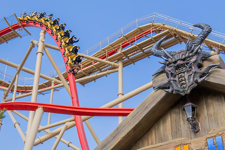 경주월드에서 짜릿한 시간을 보내보세요! 경주월드는 극강의 어트랙션이 많기로 유명해요. 세계에서 6번째, 대한민국 최초! 90도로 수직 하강하는 다이브 코스터 드라켄과 360도로 회전하며 메가톤급 스릴을 선사하는 크라크는 경주월드에서 반드시 타봐야 할 어트랙션이에요. 아시아 최초 싱글레일코스터 스콜&하티까지 함께 즐겨보세요!