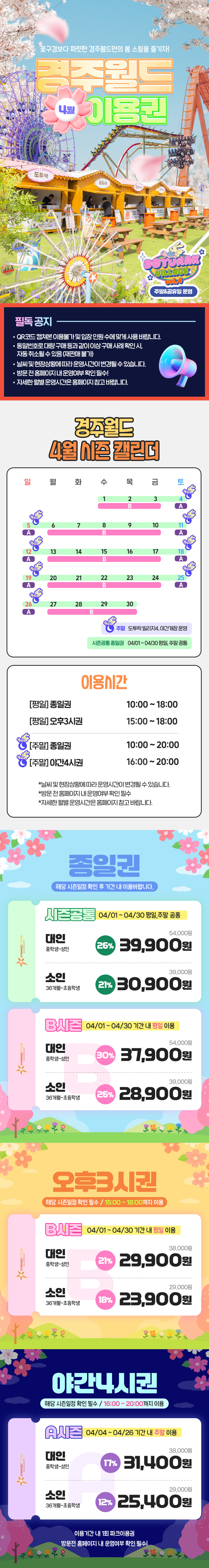 ※ 기상/현장 상황에 따라 운영이 변경될 수 있으니 홈페이지 참고 부탁드립니다.