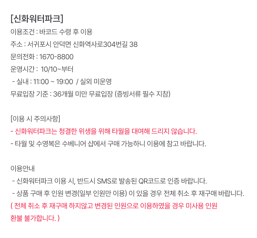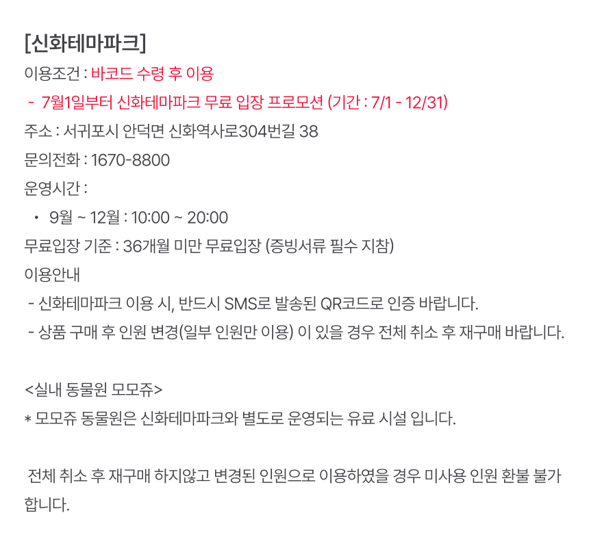 (단, 무료 입장만 가능하며, 어트랙션 탑승, 모모쥬 동물원 이용 모두 불가합니다.)