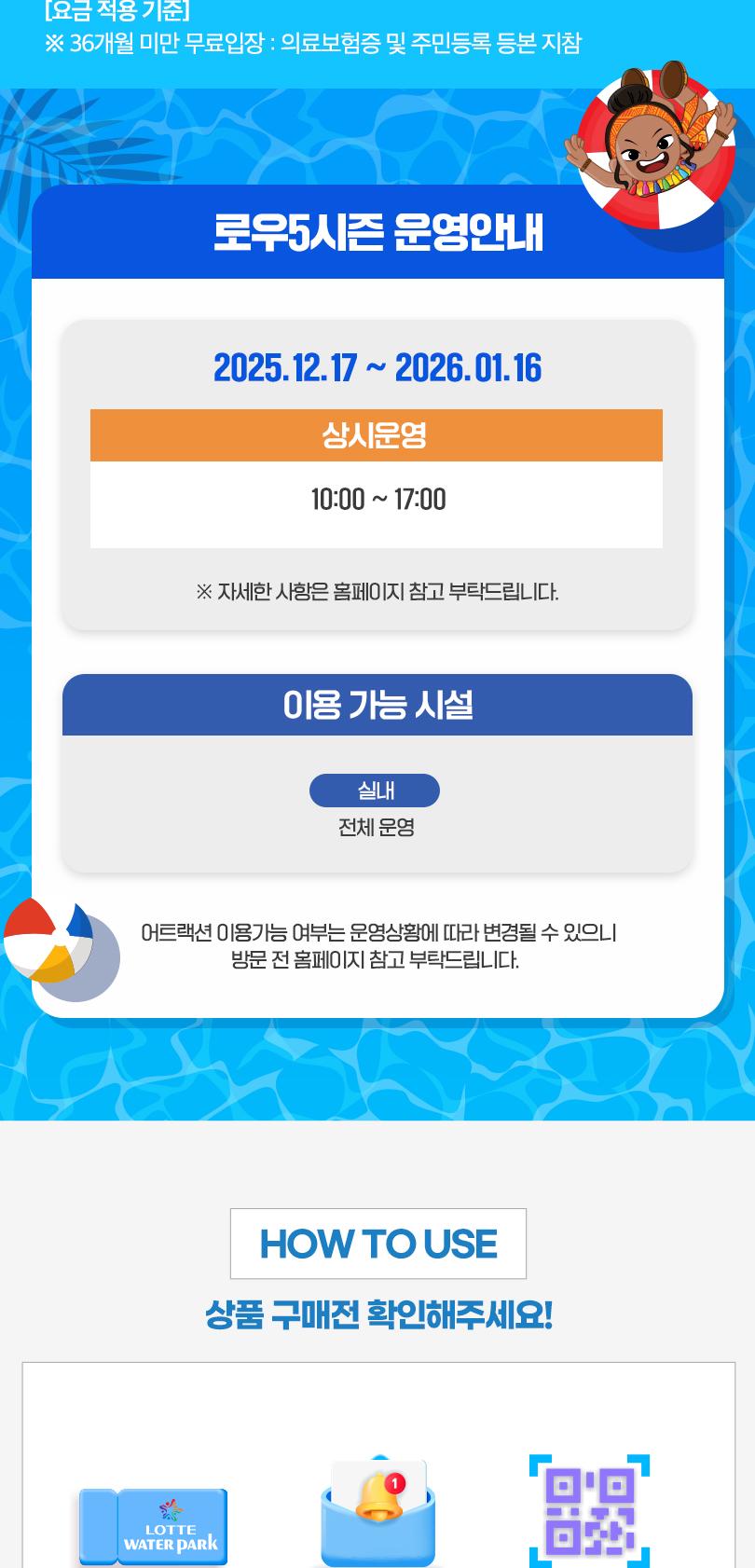 한국어 제공🌊 한겨울에도 리조트급 온천 스파 & 짜릿한 워터슬라이드! 지금 롯데워터파크 특가로 따뜻하고 신나는 힐링타임 즐겨보세요! 🏖️✨ 특가기간 : 2025.12.17 ~ 2025.12.21 유효기간 : 구매일 ~ 2026.01.16