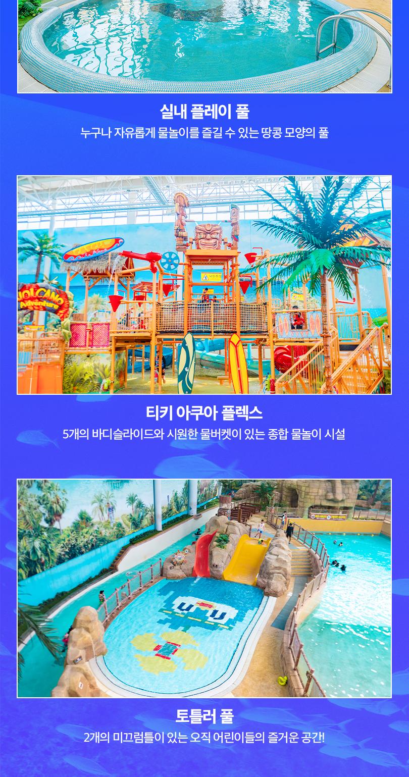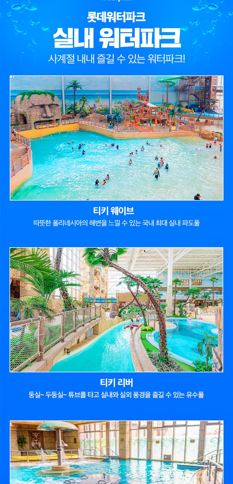 이국적인 테마인 폴리네시안 컨셉으로 꾸며진 롯데워터파크는 해운대에서 1시간 거리로, 부산 바캉스와 함께 즐길 수 있어요! 겨울을 맞아 실내에는 슬라이드 3종을 포함해 힐링 스파 풀, 터키 웨이브 등 다양한 시설이 준비되었어요. 롯데워터파크에서는 롯데월드 운영의 노하우로 차별화된 서비스와 안정성을 느낄 수 있으니, 방문할 수밖에 없겠죠?