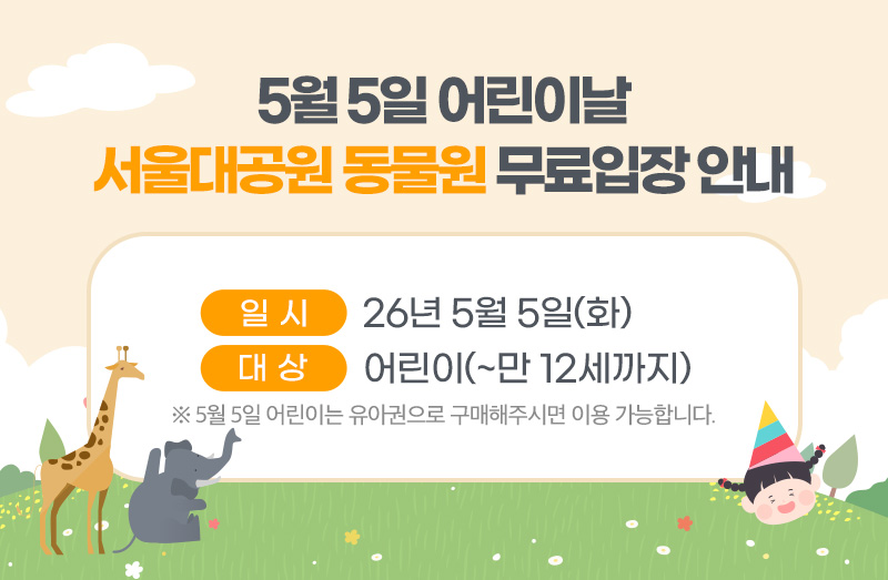 운영 시간은 현장상황에 따라 달라질 수 있으니 서울동물원 홈페이지 확인 후 이용 바랍니다.
