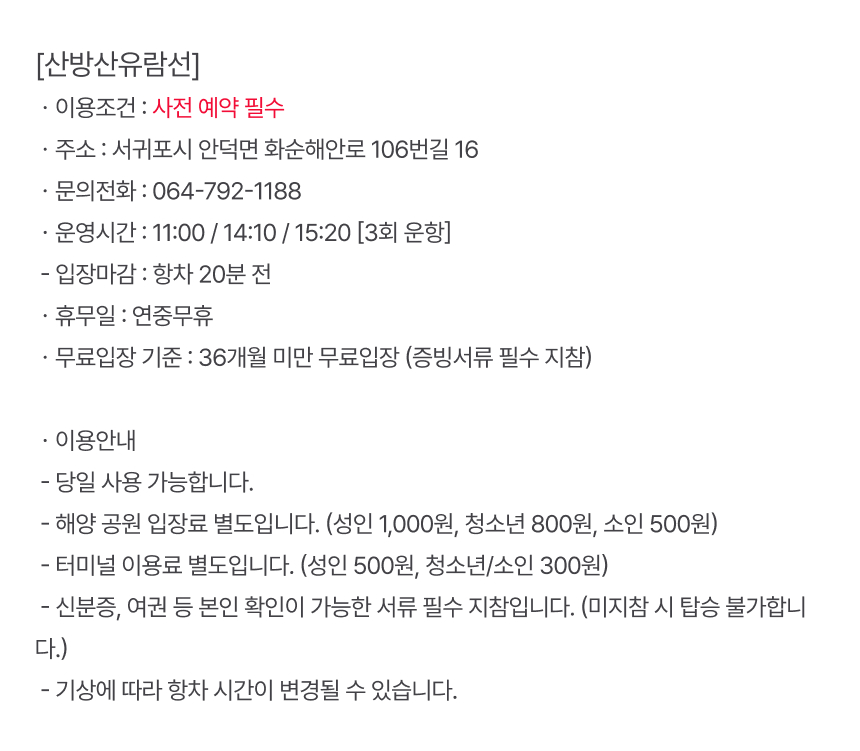 오전 11:00 / 오후 14:10 / 오후 15:20 (3회 운항)