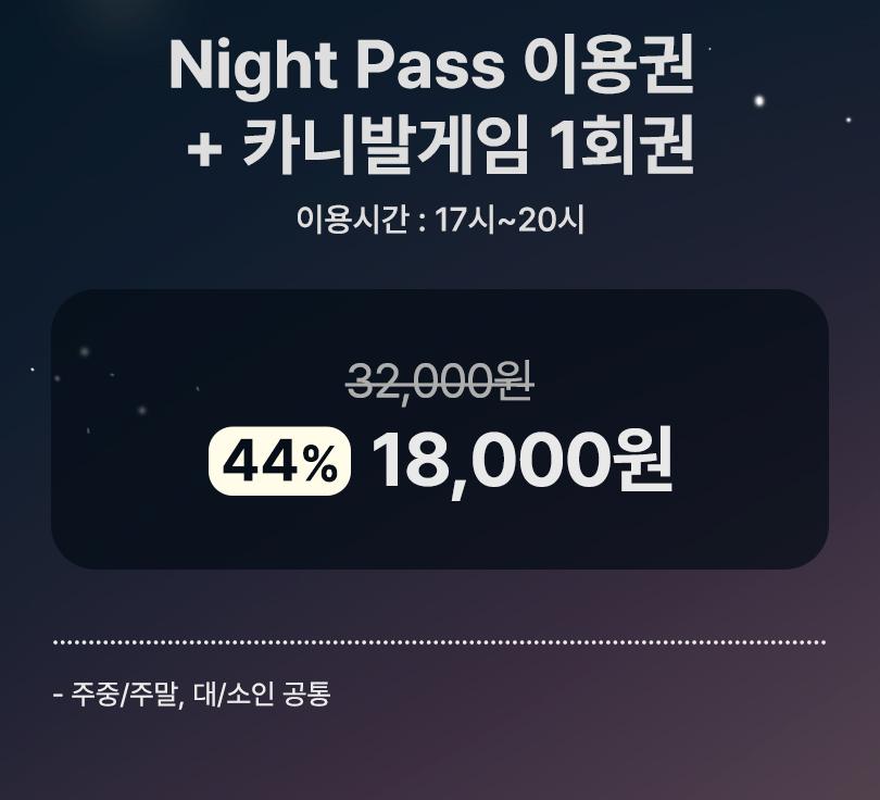 한국어 제공🎡 화려함 MAX! 즐거움 MAX! 원더박스 나이트패스 + 카니발게임 지금 WAUG와 함께 특가로 만나보세요! 판매기간 : 2026.01.05 ~ 2026.01.08 유효기간 : 구매일 ~ 2026.02.01