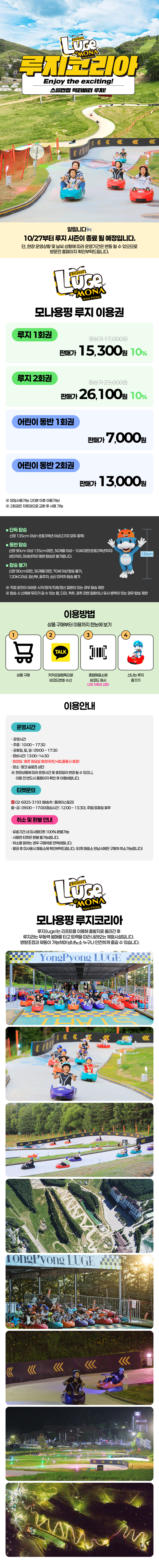 고도가 높아 하늘아래 첫 동네라고 불리는 대관령의 용평리조트에서 시원하게 바람을 가르며 루지를 즐겨보세요.