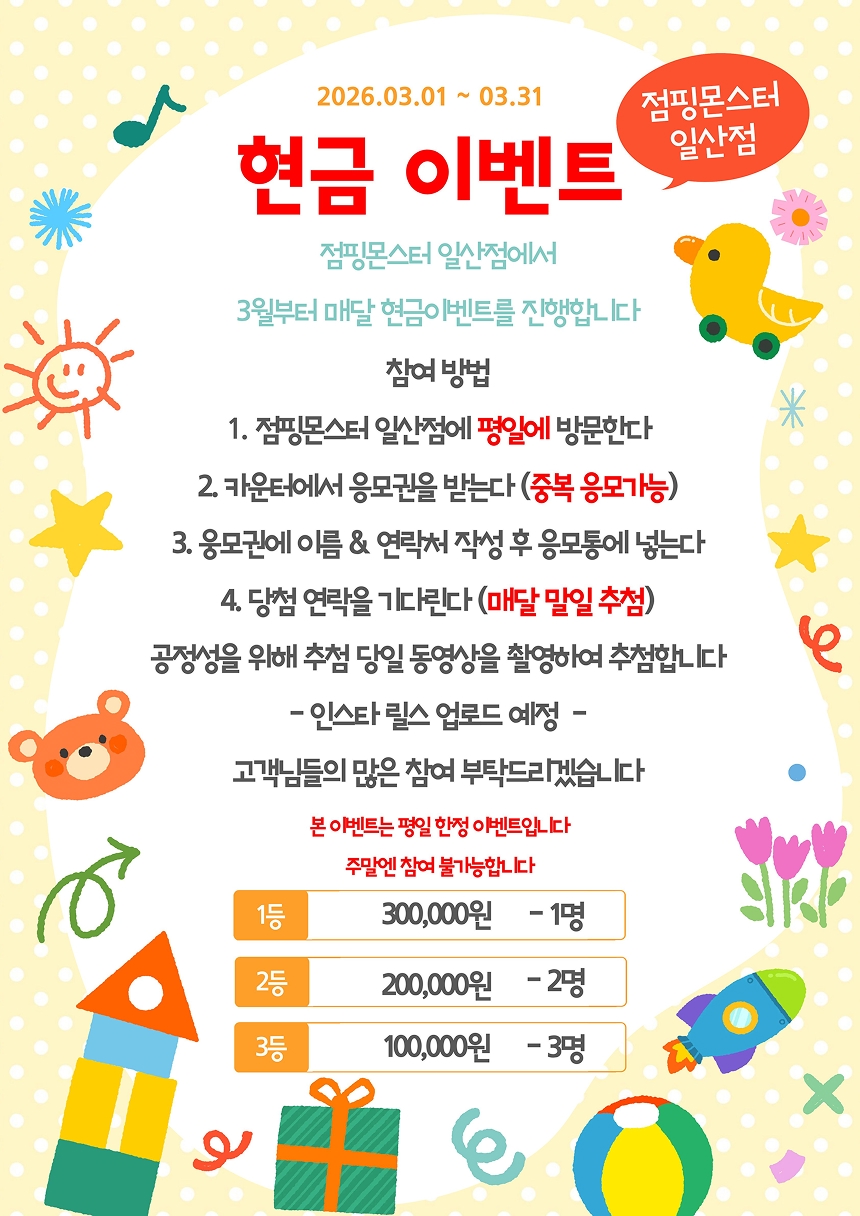 어느덧 저물어가는 해를 아쉬워할 필요는 없습니다. ‘올데이 플레이’와 함께라면 이곳은 아이들에게 세상에서 가장 큰 선물 상자가 되어줄 테니까요. 오늘, 우리 아이의 에너지가 가장 빛나는 순간을 점핑몬스터 일산점에서 기록해 보세요.