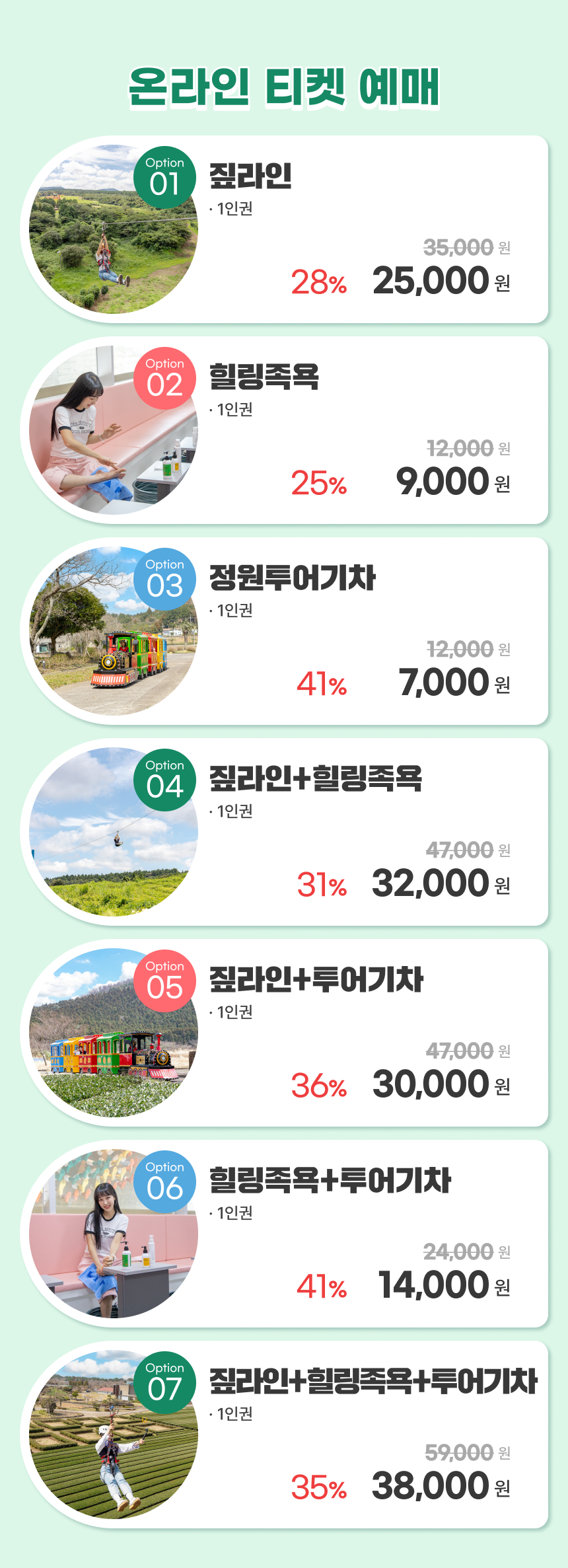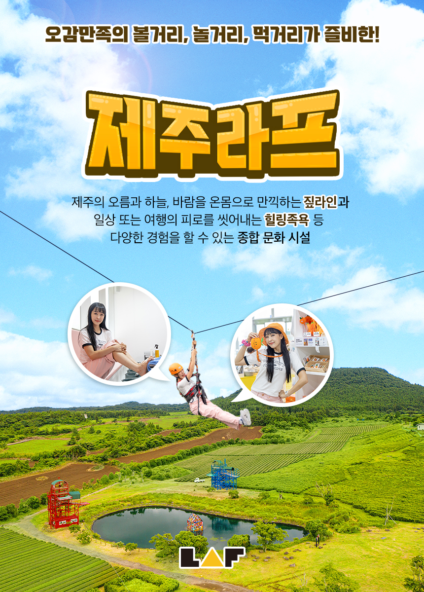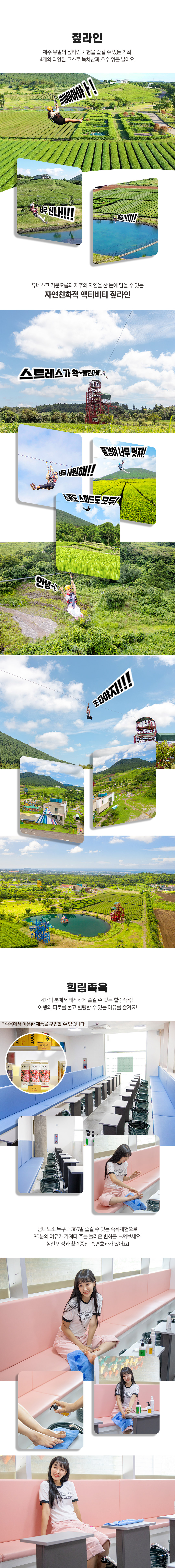 드넓은 제주 녹차밭 속에서 4단계 코스로 더욱 특별한 짚라인을 즐겨보세요. 제주의 맑은 공기를 마시며 하늘을 나는 짜릿함을 느낄 수 있어요. 공기 맑은 제주에서, 거문오름의 광활한 녹차밭을 가로지르는 짚라인을 통해 최고의 자연을 느껴요. 또한 라프만의 풋스파 브랜드 라풋에서 향기 가득 아로마 테라피 족욕도 체험할 수 있어요. 따뜻한 물에 발을 담그는 힐링의 시간을 가지며, 아름다운 예술품을 보고 미각과 시각을 즐겁게 해주는 카페의 다양한 메뉴를 즐겨 보세요! 잊을 수 없는 제주에서의 추억이 만들어 질 거예요.