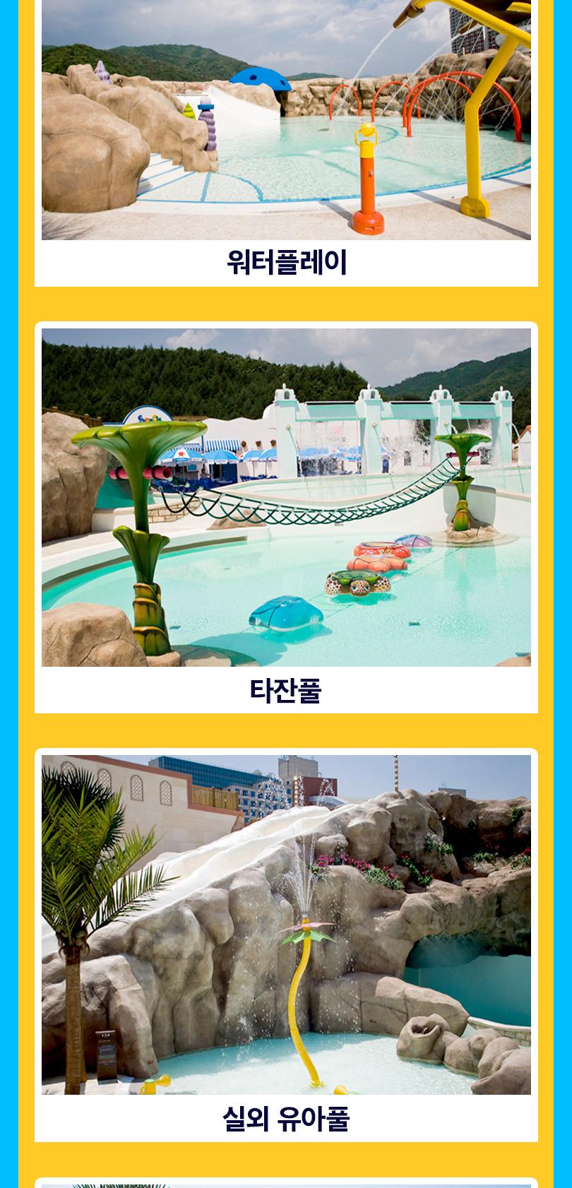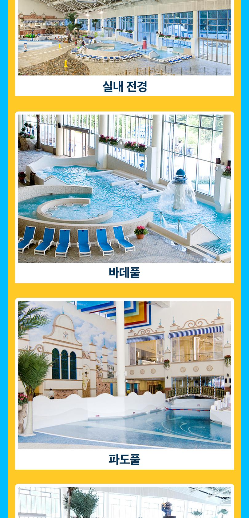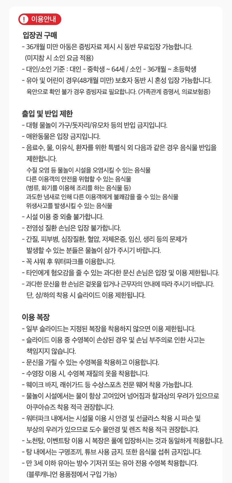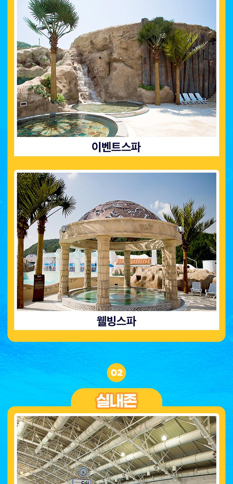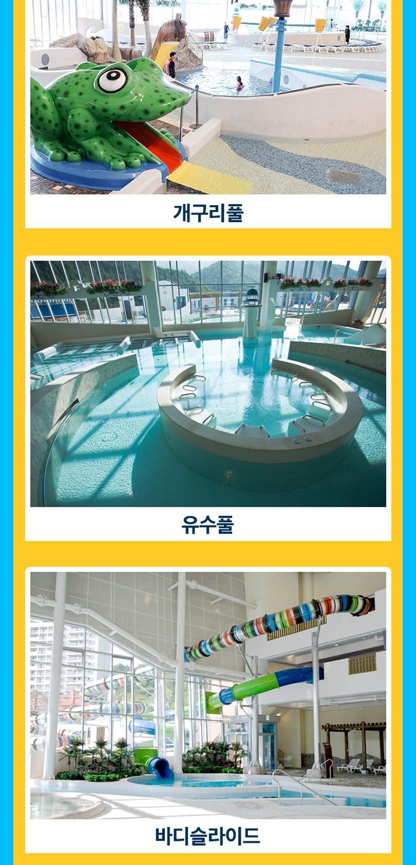 강원도 평창 휘닉스파크 블루캐니언 워터파크는 지중해 감성을 담은 프리미엄 워터파크에요. 지하 700m에서 끌어올린 천연 광천수를 사용하는 실내존에는 파도풀과 유수풀, 바데풀과 유아풀까지 갖춰져 있어 사계절 내내 날씨 걱정 없이 안전하고 쾌적한 물놀이를 즐길 수 있어요. 실외존으로 나가면 한국 최초의 업힐 슬라이드와 140m 스피드 슬라이드, 가족이 함께 즐기는 패밀리 슬라이드 등 짜릿한 어트랙션이 기다리고 있으며, 국내 최장 201m 웨이브 리버에서는 색다른 스릴을 만끽할 수 있답니다. 물놀이 후에는 반신욕탕과 이벤트 스파에서 피로를 풀고, 푸드코트와 간식 코너에서 든든하게 식사와 간식을 즐기며 여유로운 시간을 보내보세요!