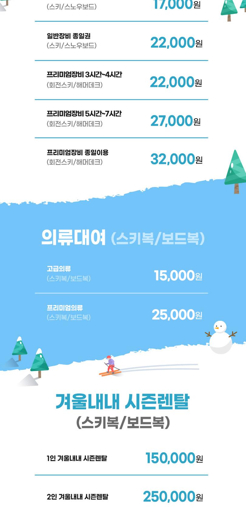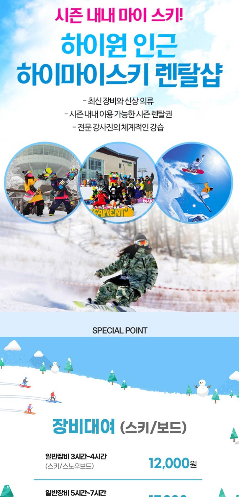 하이마이스키에서는 스타일리쉬한 의류와 깨끗하게 관리 된 장비를 렌탈하여 쾌적하게 겨울 스포츠를 즐길 수 있어요. 전문 강사진의 친절하고 체계적인 강습도 제공하고 있어 안전하고 꼼꼼하게 스키와 보드를 배울 수 있어요. 하이마이스키 렌탈샵에서 즐거운 겨울 보내세요!